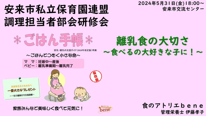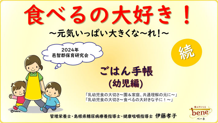 その他食育活動 · 2024/06/10 邑智郡保育研究会 調理担当者研修会 邑智郡保育研究会 調理担当者研修会 往復5時間 滞在時間3時間 保育研究会の勉強会に呼んでいただきました。 6〜8年前にも邑南町には行かせてもらってました。 この時は行政主催でした。 今回は研究会からのご依頼でした。 グループワークにも入らせてもらって、生の声を聞けて、私も勉強になりました。 tagPlaceholderカテゴリ: コメントをお書きください コメント: 0